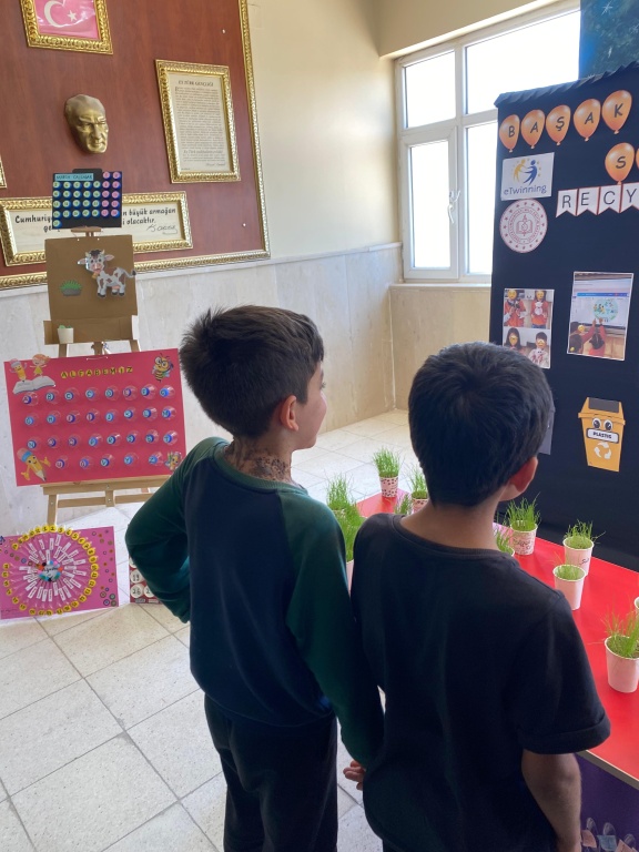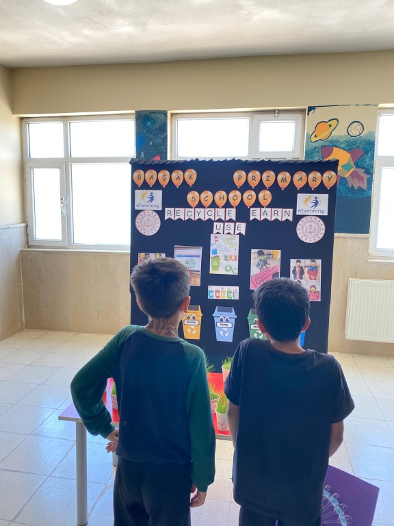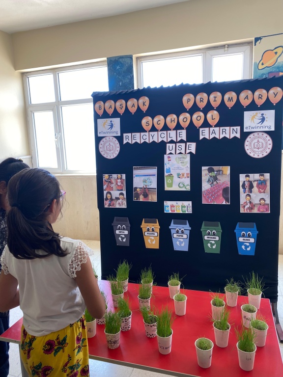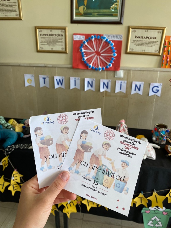 Our school teacher Rana Atalay organized an e-twinning exhibition on Thursday, May 15th. The products designed by students from waste materials regarding the Recycle Earn Use project and their work related to the project were exhibited in the exhibition.